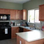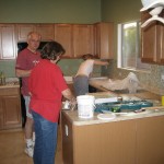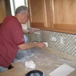 This past week we had a few more visitors from Iowa. My parents came out to spend some time in the Arizona sun. They did see some nice weather, but we put them to work. Brian’s new house needed some TLC, so we went up to Casa Grande on Saturday to help paint. They’d already done a good deal of painting and patching before we arrived. A fresh coat of paint really made things look nice. Then on Sunday they came back to Tucson (Brian came too) to help out with another house project. We installed a glass tile backsplash in our kitchen. That involved quite a few steps, as well as renting a tile saw. So on Sunday we cut and stuck the tiles to the wall. Brian manned the saw. Then on Monday, we finished with the grout. Jess and I have been finishing up little odds and ends up until today with sealing the grout, and re caulking the wall/counter break. We are finally done. You can see some photos below, and of course, another time lapse video of the process. Thanks to everyone who came and helped!